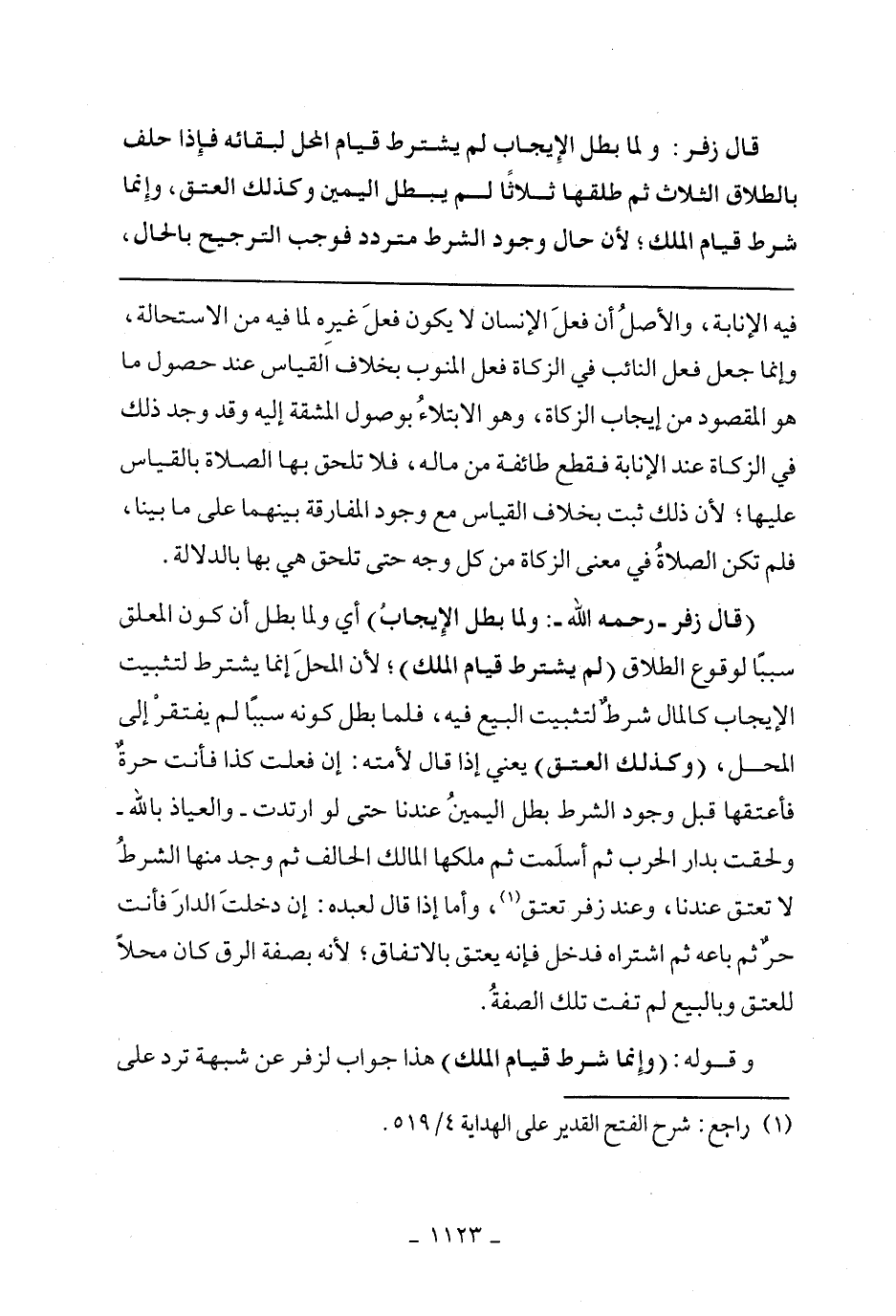 وقوله: (وإنما شرط قيام الملك) هذا جواب لزفير عن شبهة ترد على