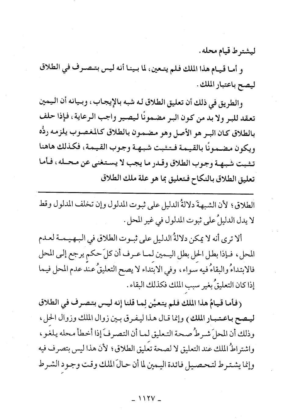 ألا ترى أنه لا يمكن دلالة الدليل على ثبوت الطلاق في البهيمة لعدم المحل، فإذا بطل الحل بطل اليمين لما عرف أن كل حكم يرجع إلى المحل فالابتداء والبقاء فيه سواء، وفي الابتداء لا يصح التعليق عند عدم المحل فيما إذا كان التعليق بغير سبب الملك فكذلك البقاء.