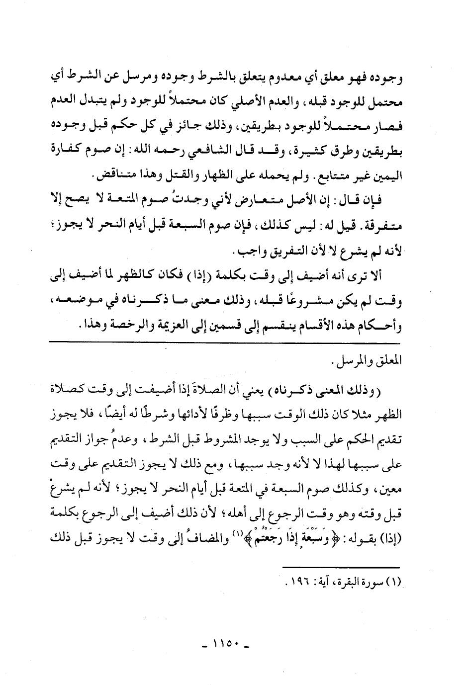 (وذلك المعنى ذكرناه) يعني أن الصلاة إذا أضيفت إلى وقت كصلاة الظهر مثلًا كان ذلك الوقت سببها وظرفًا لأدائها وشرطًا له أيضًا، فلا يجوز تقديم الحكم على السبب ولا يوجد المشروط قبل الشرط، وعدم جواز التقديم على سببها لهذا لا لأنه وجد سببها، ومع ذلك لا يجوز التقديم على وقت معين، وكذلك صوم السبعة في المتعة قبل أيام النحر لا يجوز؛ لأنه لم يشرع قبل وقته وهو وقت الرجوع إلى أهله؛ لأن ذلك أضيف إلى الرجوع بكلمة (إذا) بقوله: {وَسَبْعَةٍ إِذَا رَجَعْتُمْ} والمضاف إلى وقت لا يجوز قبل ذلك