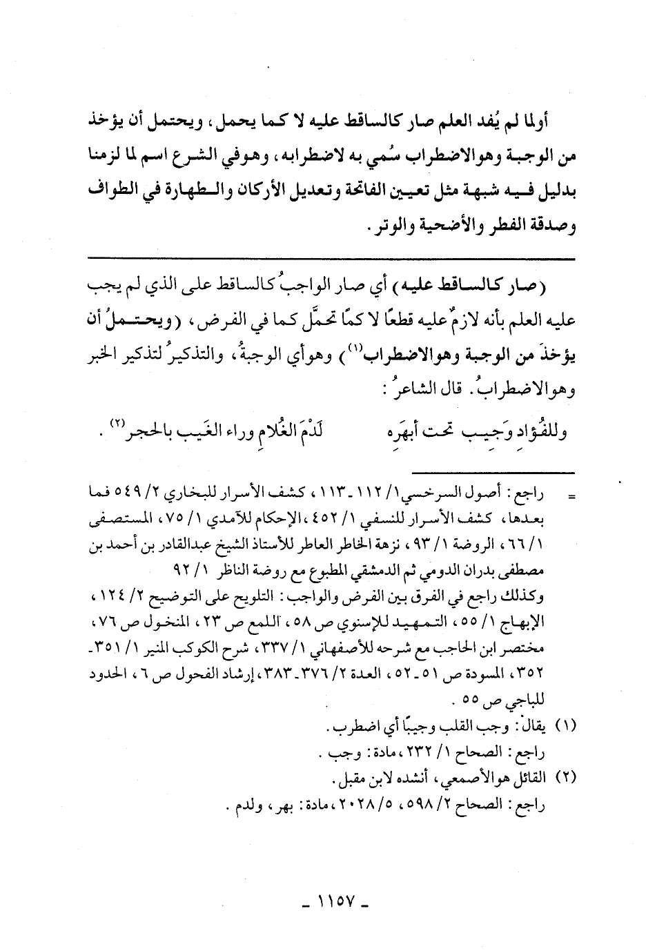 (صار كالساقط عليه) أي صار الواجب كالساقط على الذي لم يجب عليه العلم بأنه لازم عليه قطعًا لا كما تحمل كما في الفرض، (ويحتمل أن يؤخذ من الوجبة وهو الاضطراب) وهو أي والجبة، والتذكير لتذكير الخير وهو الاضطراب. قال الشاعر: