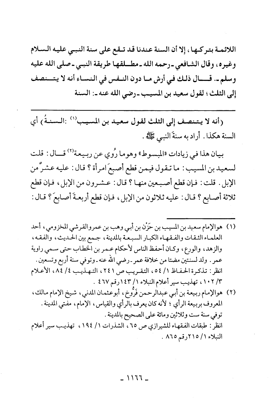 بيان هذا في زيادات ((المبسوط)) وهو ما روي عن ربيعة قال: قلت لسعيد بن المسيب: ما تقول فيمن قطع أصبع امرأة؟ قال: عليه عشر من الإبل. قلت: فإن قطع أصبعين منها؟ قال: عشرون من الإبل، فإن قطع ثلاثة أصابع؟ قال: عليه ثلاثون من الإبل، فإن قطع أربعة أصابع؟ قال: