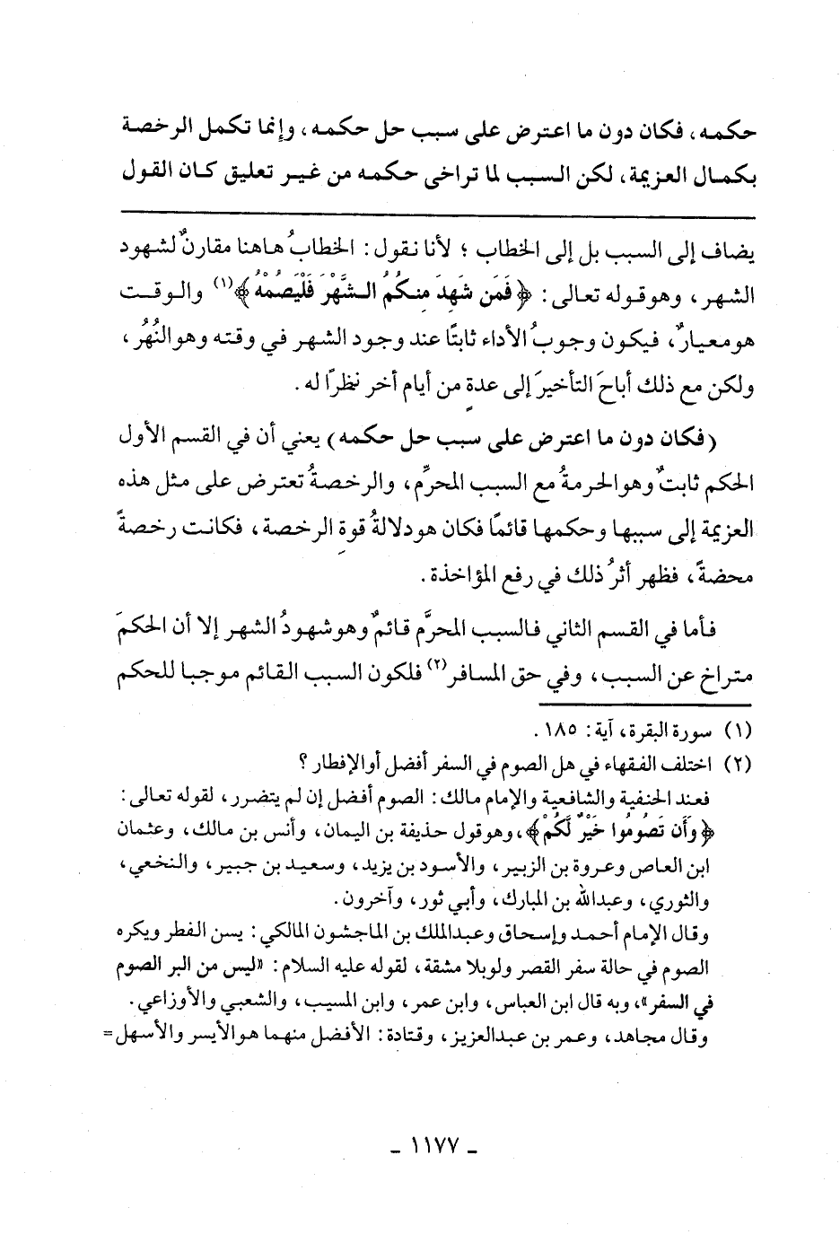 فأما في القسم الثاني فالسبب المحرم قائم وهو شهود الشهر إلا أن الحكم متراخ عن السبب، وفي حق المسافر فلكون السبب القائم موجبًا للحكم