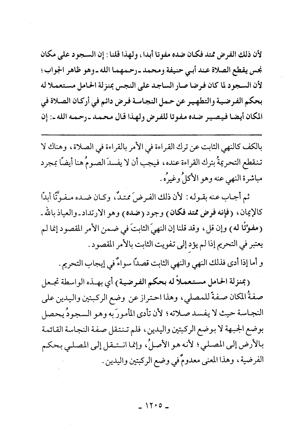 ثم أجاب عنه بقوله: لأن ذلك الفرض ممتد، وكان ضده مفوتًا أبدًا كالإيمان، (فإنه فرض ممتد فكان) وجود (ضده) وهو الارتداد- والعياذ بالله- (مفوتًا له) وإن قل، وقد قلنا إن النهي الثابت في ضمن الأمر المقصود إنما لم يعتبر في التحريم إذا لم يؤد إلى تفويت الثابت بالأمر المقصود.