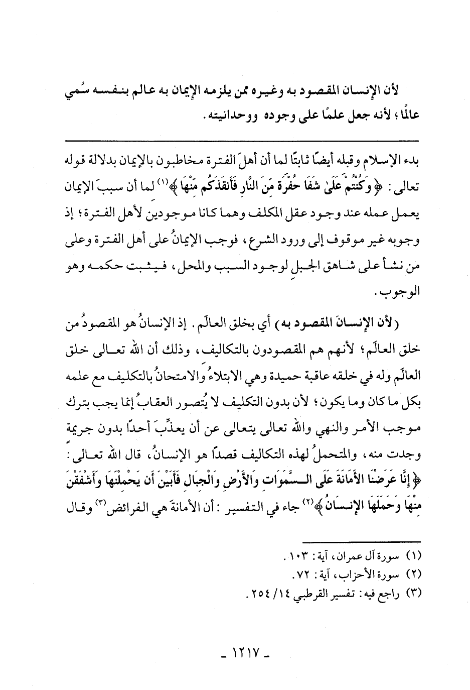 بدء الإسلام وقبله أيضًا ثابتًا لما أن أهل الفترة مخاطبون بالإيمان بدلالة قوله تعالى: {وَكُنْتُمْ عَلَى شَفَا حُفْرَةٍ مِنَ النَّارِ فَأَنْقَذَكُمْ مِنْهَا} لما أن سبب الإيمان يعمل عمله عند وجود عقل المكل وهما كانا موجودين لأهل الفترة؛ إذ وجوبه غير موقوف إلى ورود الشرع، فوجب الإيمان على أهل الفترة وعلى ما نشأ على شاهق الجبل لوجود السبب والمحل، فيثبت حكمه وهو الوجوب.