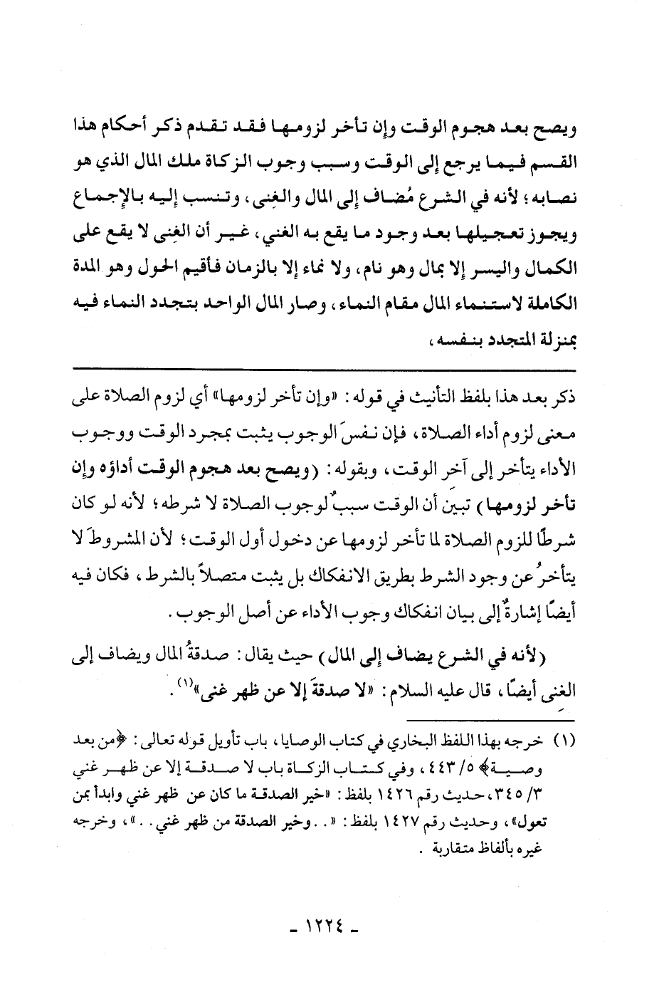 ذكر بعد هذا بلفظ التأنيث في قوله: ((وإن تأخر لزومها)) أي لزوم الصلاة على معنى لزوم أداء الصلاة، فإن نفس الوجوب يثبت بمجرد الوقت ووجوب الأداء يتأخر إلى آخر الوقت، وبقوله: (ويصح بعد هجوم الوقت أداؤه وإن تأخر لزومها) تبين أن الوقت سبب لوجوب الصلاة لا شرطه؛ لأنه لو كان شرطًا للزوم الصلاة لما تأخر لزومها عن دخول أول الوقت؛ لأن المشروط لا يتأخر عن وجود الشرط بطريق الانفكاك بل يثبت متصلًا بالشرط، فكان فيه أيضًا إشارة إلى بيان انفكاك وجوب الأداء عن أصل الوجوب.