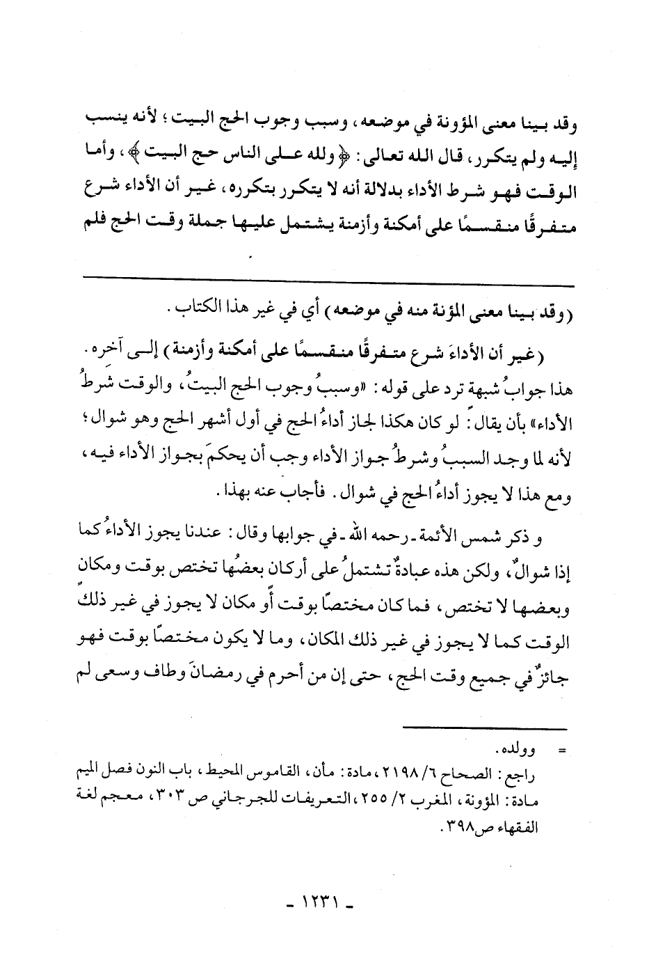 (وقد بينا معنى المؤنة منه في موضعه) أي في غير هذا الكتاب.