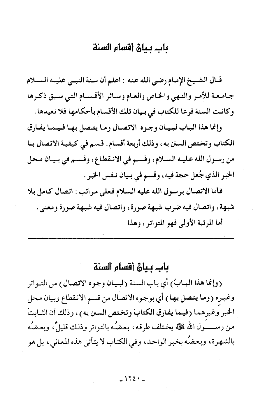 (وإنما هذا الباب) أي باب السنة (لبيان وجوه الاتصال) من التواتر وغيره (وما يتصل بها) أي بوجوه الاتصال من قسم الانقطاع وبيان محل الخبر وغيرهما (فيما يفارق الكتاب وتختص السنن به)، وذلك أن الثابت من رسول الله - صلى الله عليه وسلم - يختلف طرقه، بعضه بالتواتر وذلك قليل، وبعضه بالشهرة، وبعضه بخبر الواحد، وفي الكتاب لا يتأتى هذه المعاني، بل هو