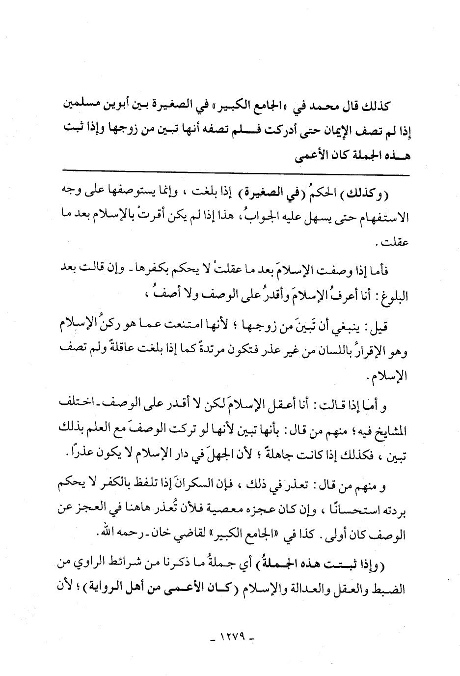 وأما إذا قالت: أنا أعقل الإسلام لكن لا أقدر على الوصف- اختلف المشايخ فيه؛ منهم من قال: بأنها تبين لأنها لو تركت الوصف مع العلم بذلك تبين، فكذلك إذا كانت جاهلة؛ لأن الجهل في دار الإسلام لا يكون عذرًا.