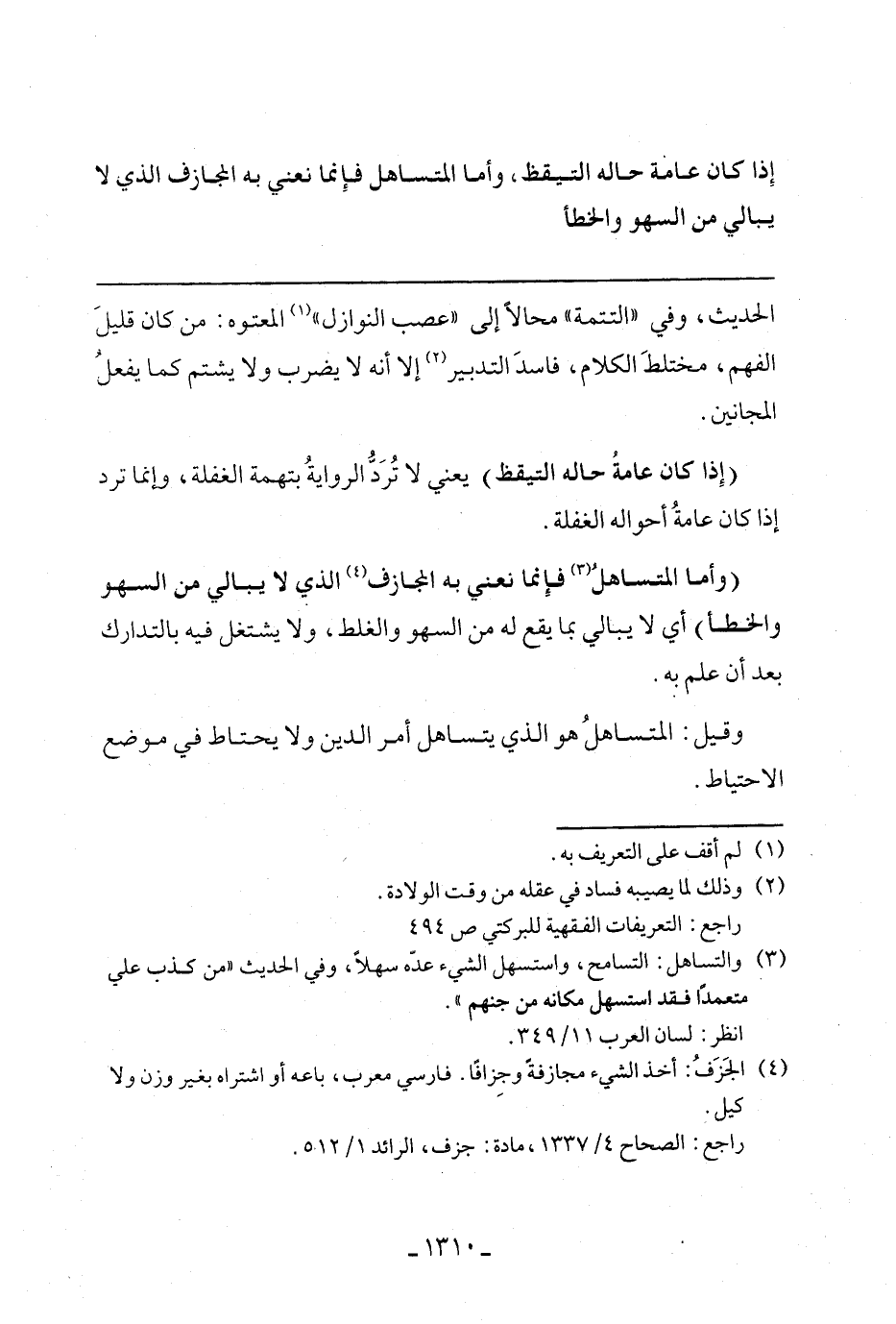 وقيل: المتساهل هو الذي يتساهل أمر الدين ولا يحتاط في موضع الاحتياط.