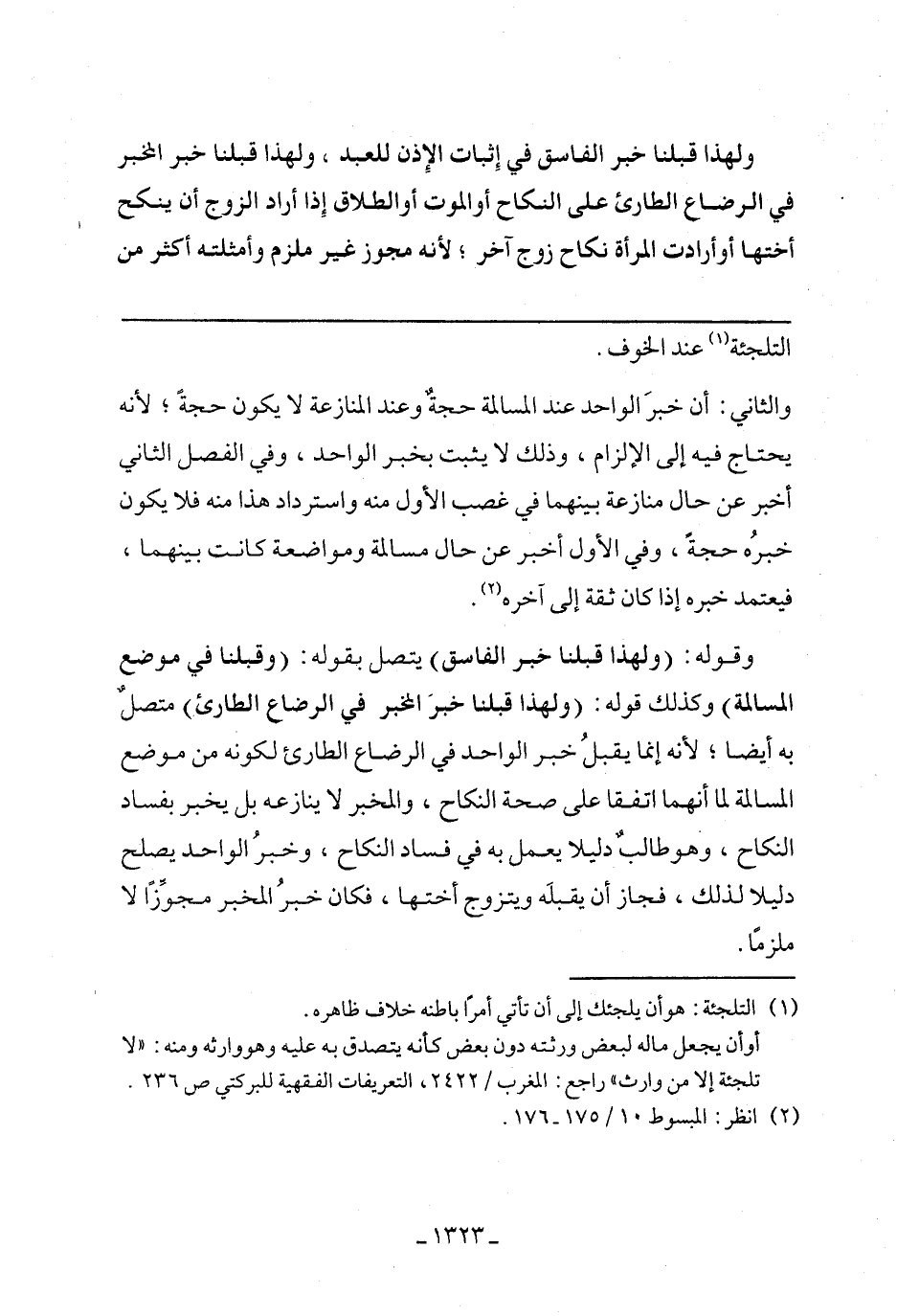 والثاني: أن خبر الواحد عند المسالمة حجة وعند المنازعة لا يكون حجة؛ لأنه يحتاج فيه الإلزام، وذلك لا يثبت بخبر الواحد، وفي الفصل الثاني أخبر عن حال منازعة بينهما في غصب الأول منه واسترداد هذا منه فلا يكون خبره حجة، وفي الأول أخبر عن حال المسالمة ومواضعة كانت بينهما، فيعتمد خبره إذا كان ثقة إلى آخره.
