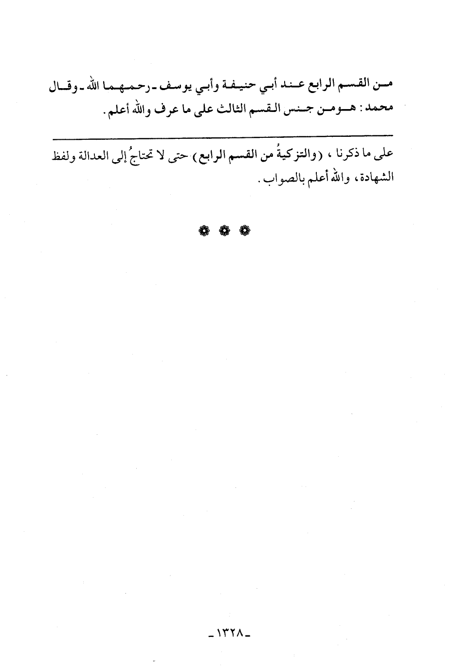 على ما ذكرنا، (والتزكية من القسم الرابع) حتى لا تحتاج إلى العدالة ولفظ الشهادة، والله أعلم بالصواب.
