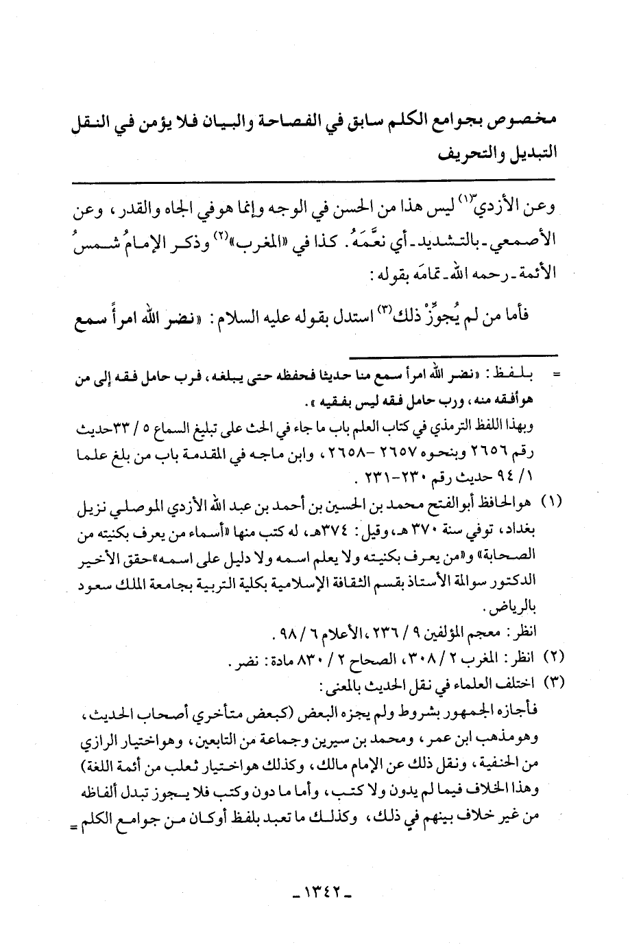 فأما من لم يجوز ذلك استدل بقوله عليه السلام: ((نضر الله امرأ سمع