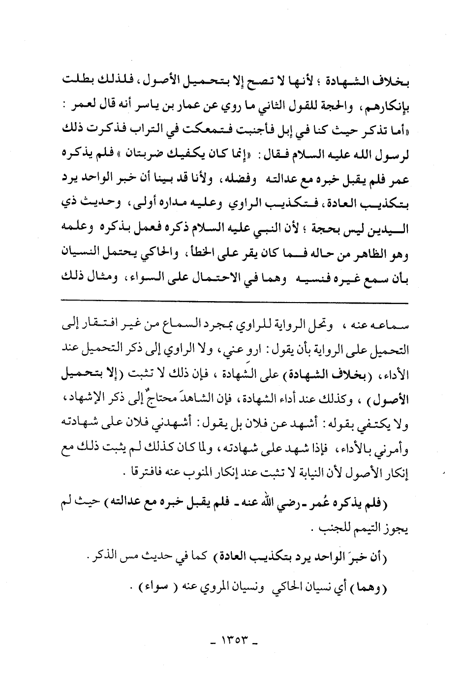(فلم يذكره عمر- رضي الله عنه- فلم يقبل خبره مع عدالته) حيث لم يجوز التيمم للجنب.