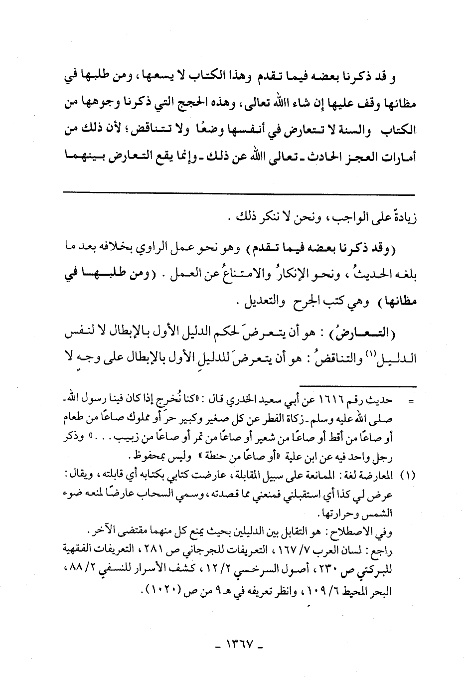 (التعارض): هو أن يتعرض لحكم الدليل الأول بالإبطال لا لنفس الدليل والتناقض: هو أن يتعرض للدليل الأول بالإبطال على وجه لا