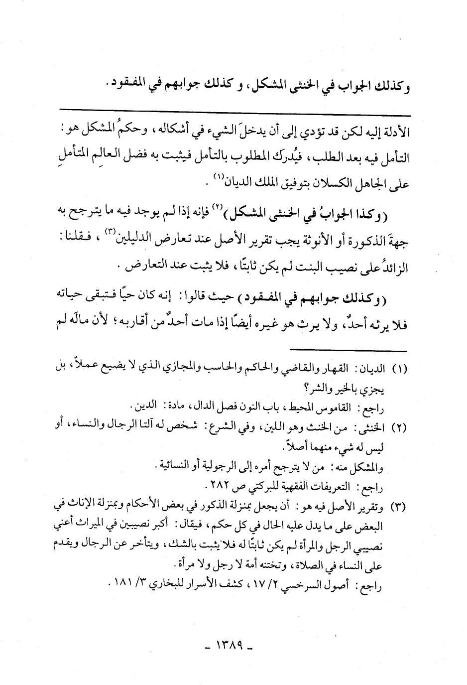 (كذا الجواب في الخنثى المشكل) فإنه إذا لم يوجد فيه ما يترجح به جهة الذكورة أو الأنوثة يجب تقرير الأصل عن تعارض الدليلين، فقلنا: الزائد على نصيب البنت لم يكن ثابتًا، فلا يثبت عند التعارض.