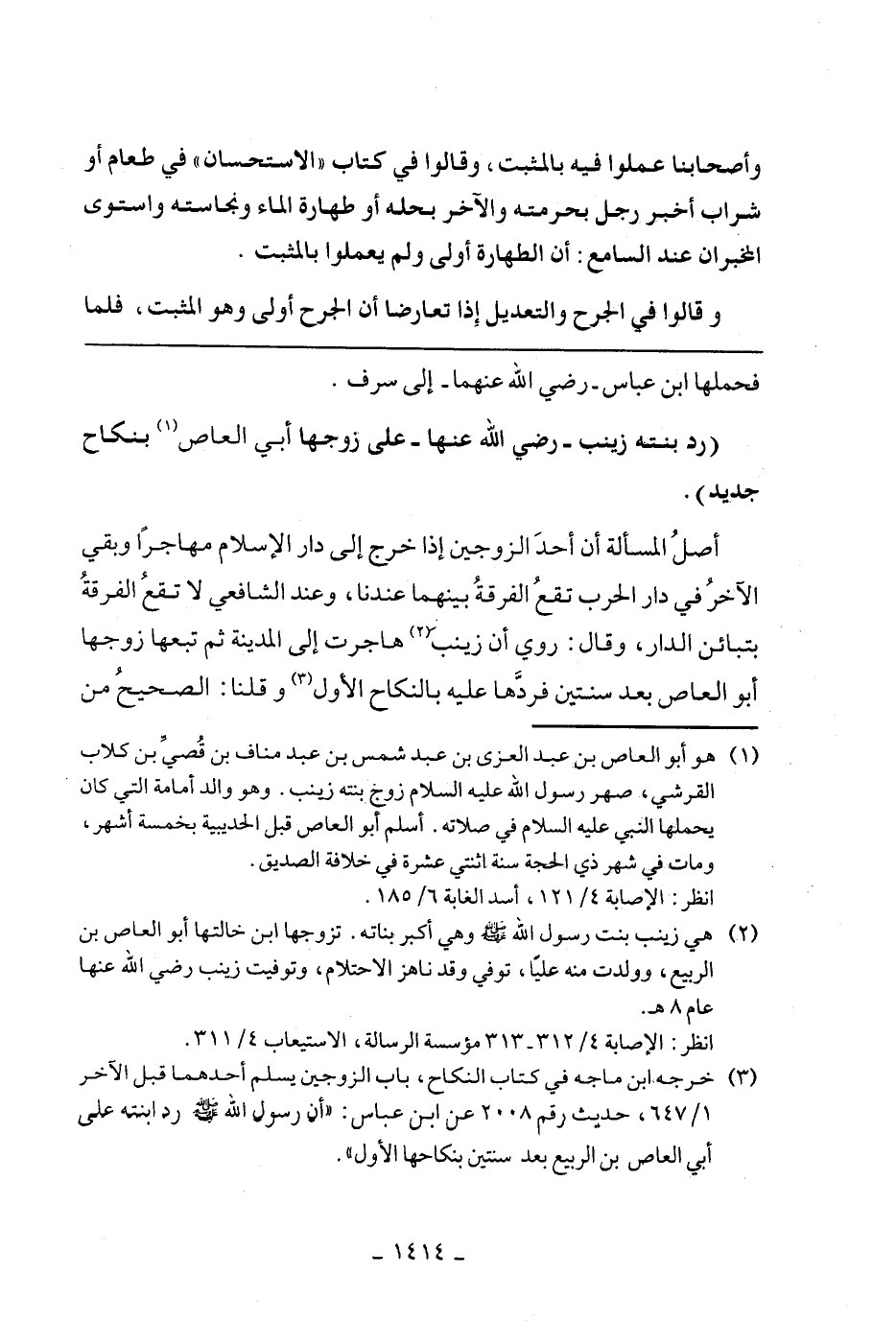 (رد بنته زينب- رضي الله عنها- إلي زوجها أبي العاص (1) بنكاح جديد)