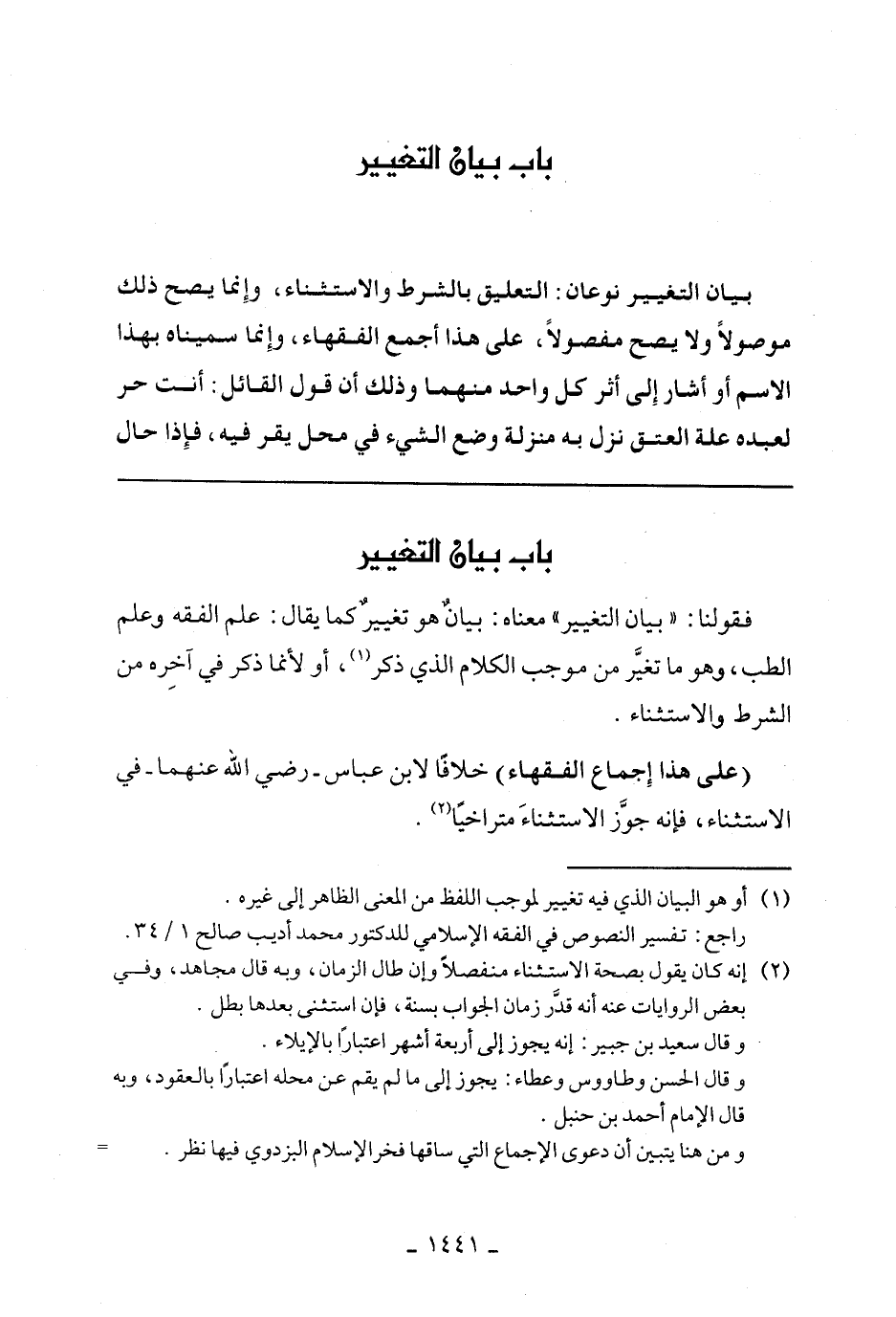 (وعلي هذا إجماع الفقهاء) خلافا لإبن عباس - رضي الله عنهما -في الاستثناء، فإنه جوز الاستثناء متراخيا.
