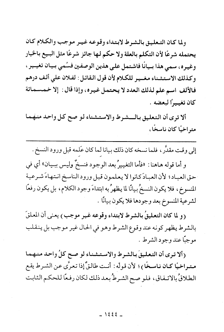 (ألا تري أن التعلق بالشرط والاستثناء لو صح كل واحد منهما متراخيا كان ناسخا)؛ لأن قوله: أنت طالق إذا تعري عن الشرط يقع الطلاق بالإتفاق، فلو صح الشرط بعد ذلك لكان رفعا للحكم الثابت