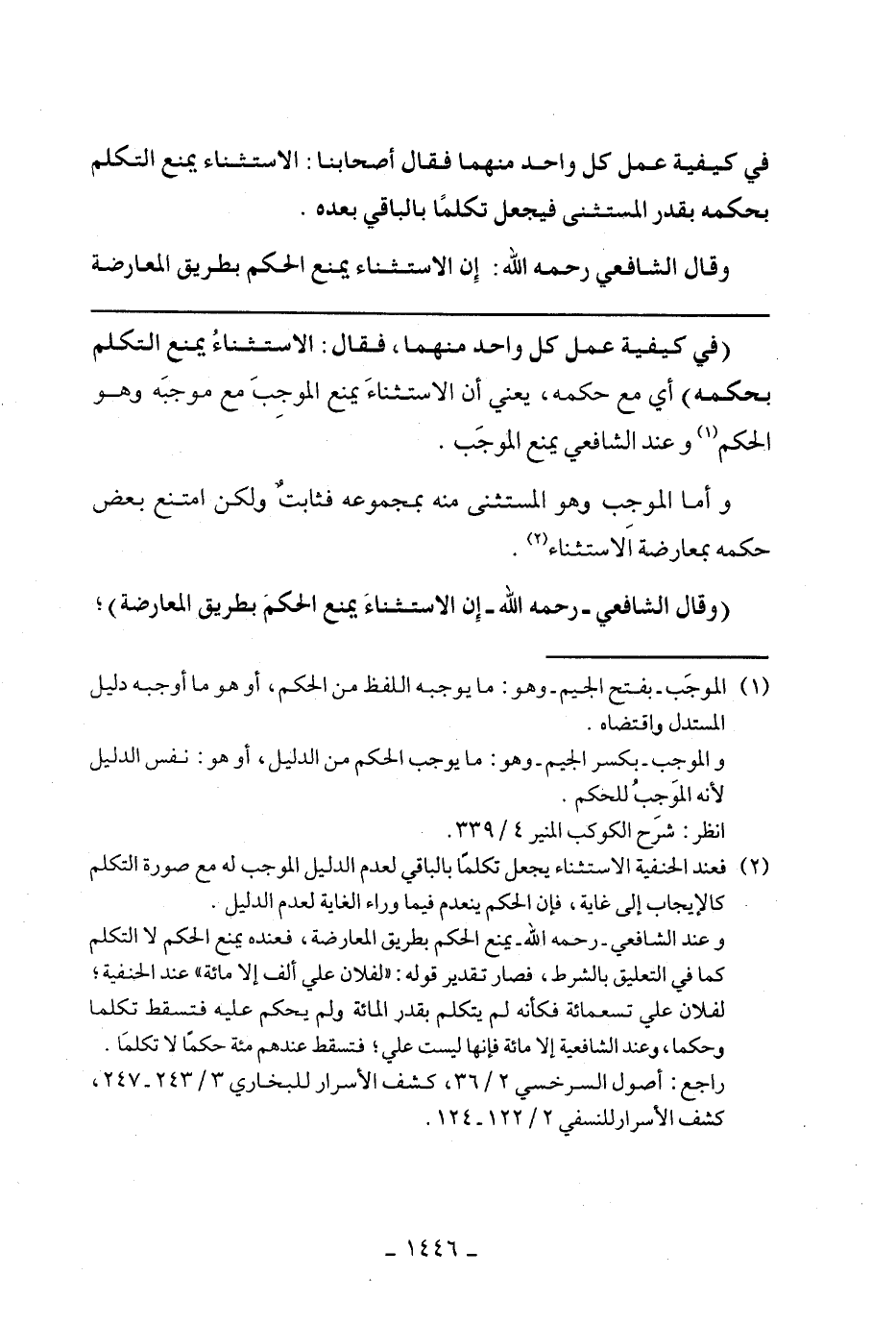 (في كيفية عمل كل واحد منهما، فقال: الاستثناء يمنع التكلم بحكمه) أي مع حكمه، يعني أن الاستثناء يمنع الموجب مع موجبه وهو الحكم عند الشافعي يمنع الموجب.