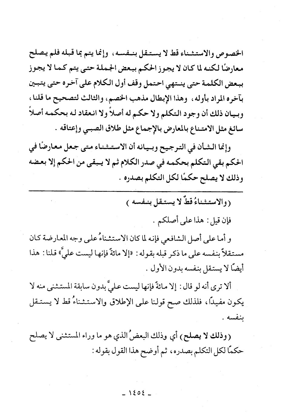 (والاستثناء قط لا يستقل بنفسه)