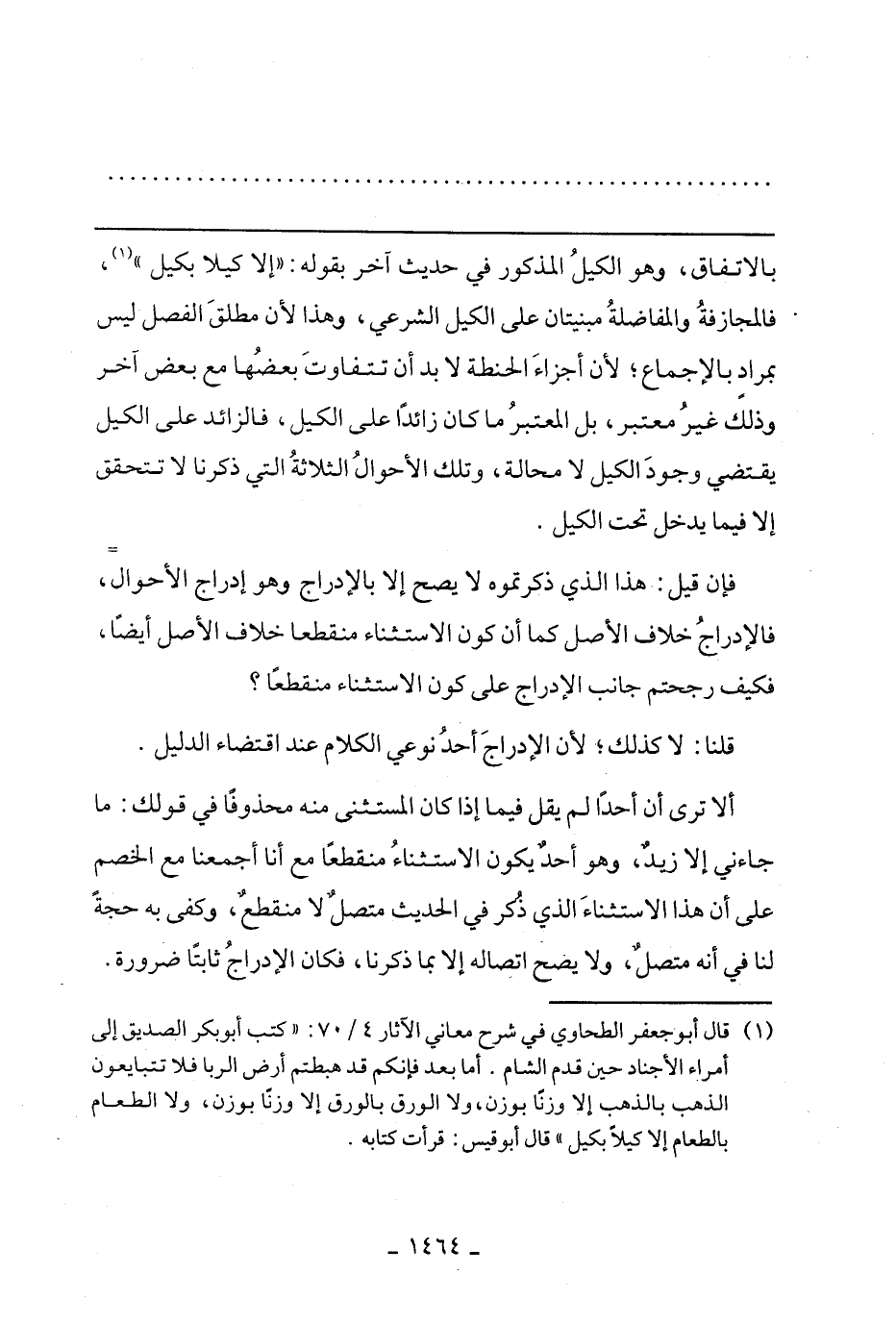 ألا ترى أن أحدًا لم يقل فيما إذا كان المستثنى منقطعًا مع أنا أجمعنا مع الخصم على أن هذا الاستثناء الذي ذكر في الحديث متصل لا منقطع، وكفى به حجة لنا في أنه متصل، ولا يصح اتصاله إلا بما ذكرنا، فكان الإدراج ثابتًا ضرورة.