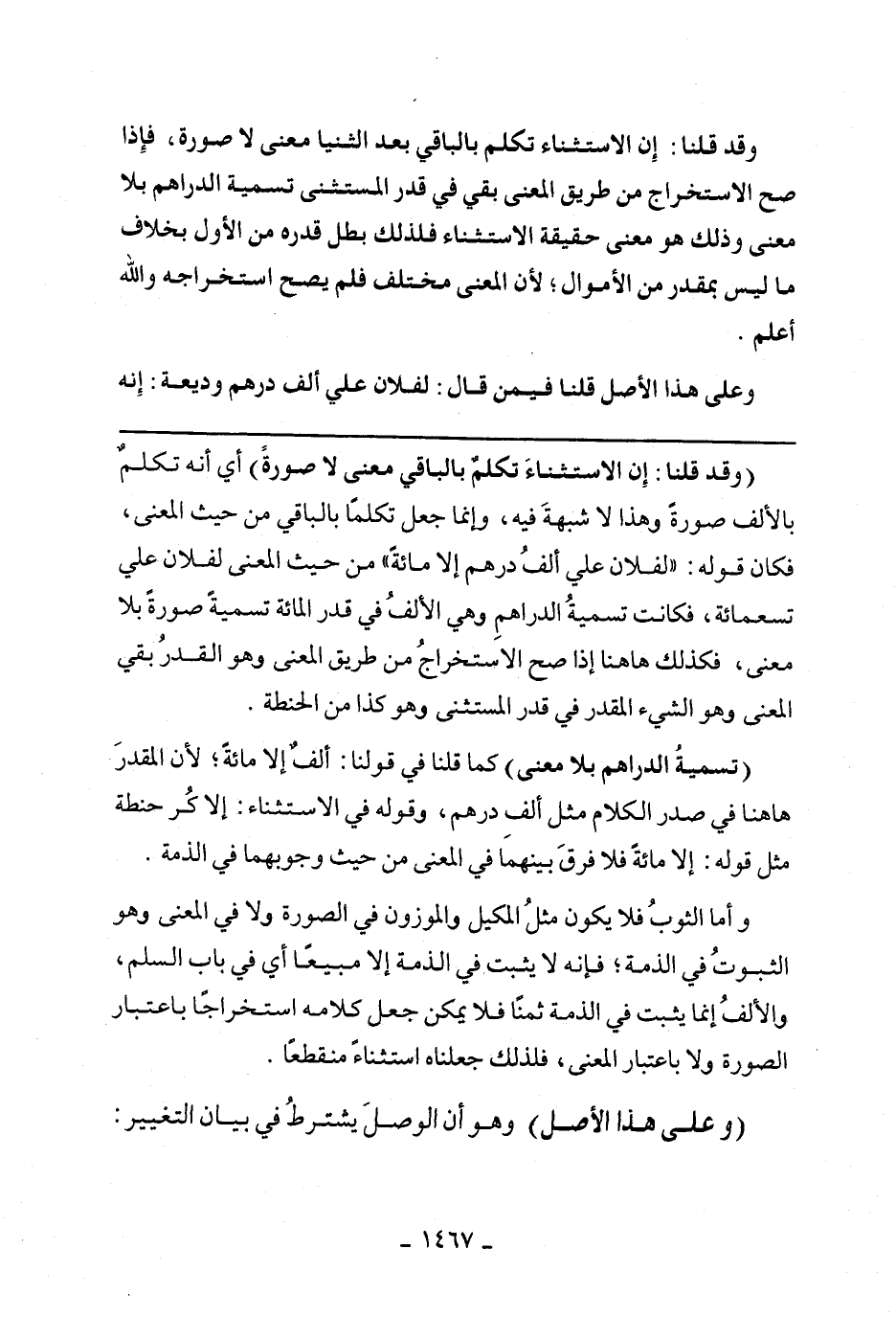 وأما الثوب فلا يكون مثل المكيل والموزون في الصورة ولا في المعنى وهو الثبوت في الذمة؛ فإنه لا يثبت في الذمة إلا مبيعًا أي في باب السلم، والألف إنما يثبت في الذمة ثمنًا فلا يمكن جعل كلامه استخراجًا باعتبار الصورة ولا باعتبار المعنى، فلذلك جعلناه استثناء منقطعًا.
