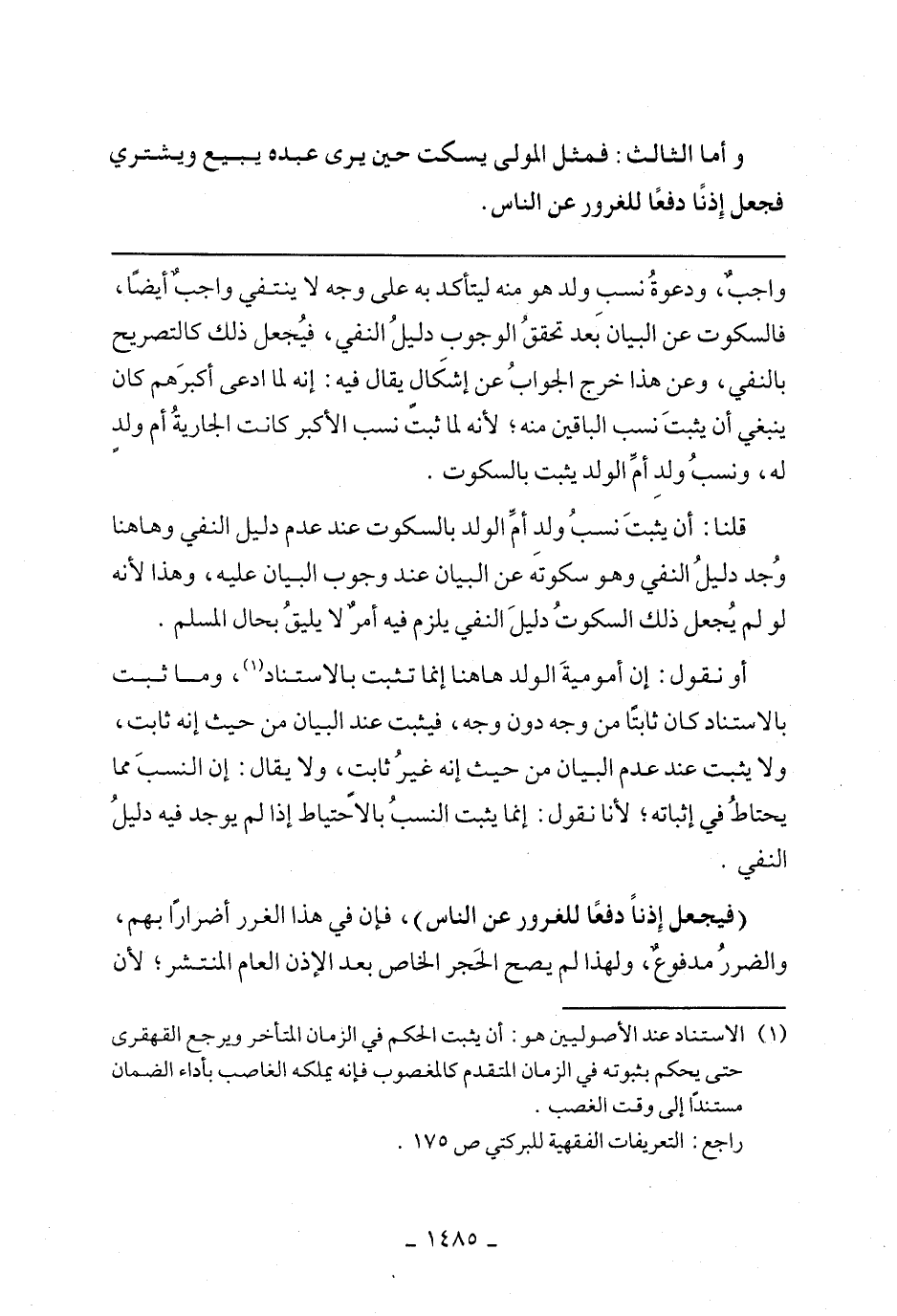 واجبٌ، ودعوةُ نسبِ ولد هو منه ليتأكد به على وجه لا ينتفي واجبٌ أيضًا، فالسكوت عن البيان بعد تحققُ الوجوب دليلُ النفي، فيُجعل ذلك كالتصريح بالنفي، وعن هذا خرج الجوابُ عن إشكَالٍ يقال فيه: إنه لما ادعى أكبرهم كان ينبغي أن يثبتَ نسب الباقين منه؛ لأنه لما ثبت نسب الأكبر كانت الجاريةُ أم ولدٍ له، ونسبً ولدِ أم ?الولد يثبت بالسكوت.