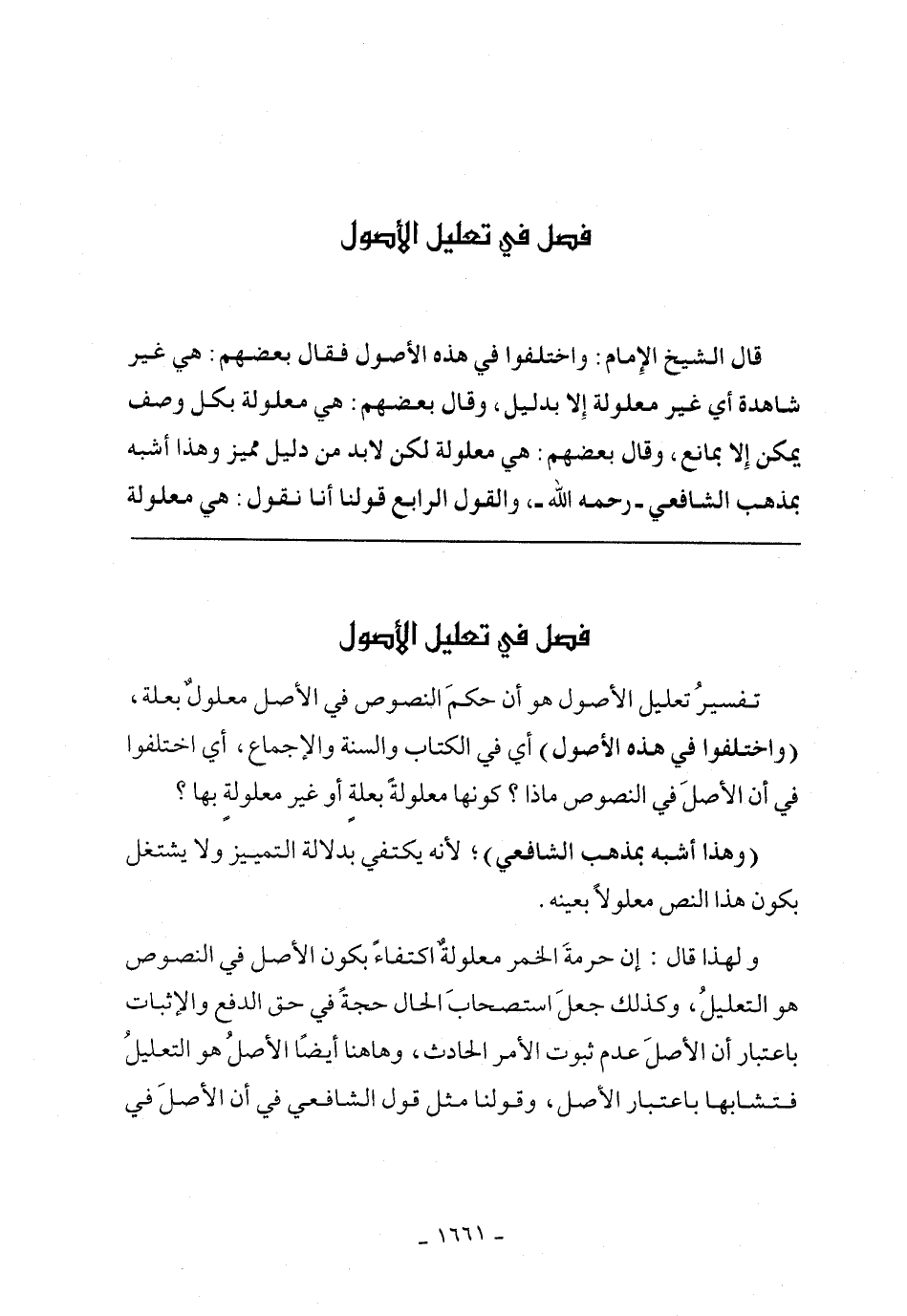 تفسير تعليل الأصول هو أن حكم النصوص في الأصل معلول بعلة، (واختلفوا في هذه الأصول) أي في الكتاب والسنة والإجماع، أي اختلفوا في أن الأصل في النصوص ماذا؟ كونها معلولة بعلة أو غير معلولة بها؟