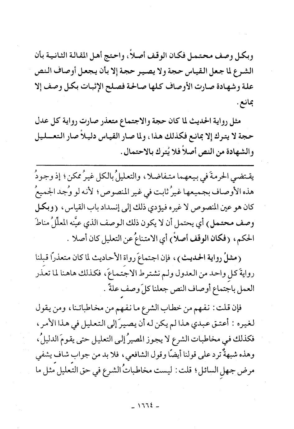 فإن قلت: نفهم من خطاب الشرع ما نفهم من مخاطباتنا، ومن يقول لغيره: أعتق عبدي هذا لم يكن له أن يصير إلى التعليل في هذا الأمر، فكذلك في مخاطبات الشرع لا يجوز المصير إلى التعليل حتى يقوم الدليل، وهذه شهة ترد على قولنا أيضًا وقول الشافعي، فلابد من جواب شاف يشفي مرض جهل السائل؛ قلت: ليست مخاطبات الشرع في حق التعليل مثل ما