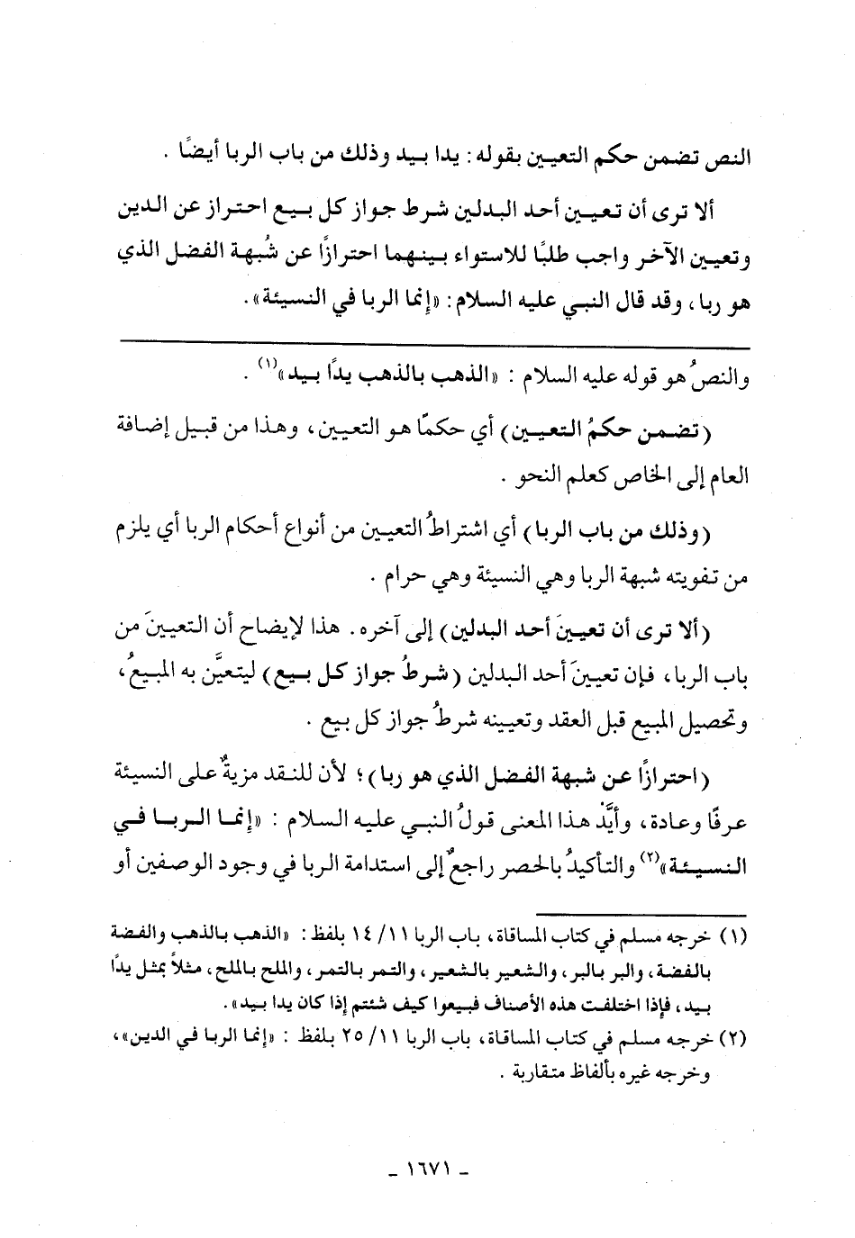 (احترازاَ عن شبهة الفضل الذي هو ربا)؛ لأن للنقد مزية على النسيئة عرفاَ وعادة, وأيد هذا المعنى قول النبي غليه السلام: "إنما الربا في النسيئة" والتأكيد بالحصر راجع إلى استدامة الربا في وجود الوصفين أو