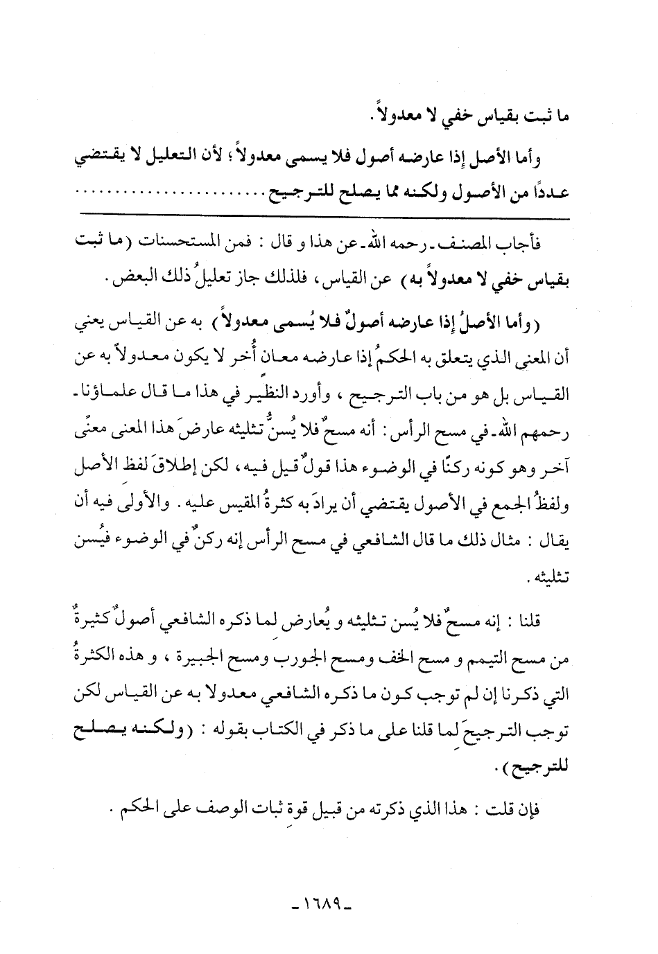 (وأما الأصل إذا عارضه أصولً فلا يسمى معدولًا) به عن القياس يعني أن المعنى الذي يتعلق به الحكم إذا عارضه معان أخر لا يكون معدولًا به عن القياس بل هو من باب الترجيح وأورد النظير في هذا ما قال علماؤنا -رحمهم الله- في مسح الرأس: أنه مسح فلا يسن تثليثه عارض هذا المعنى معنى آخر وهو كونه ركنًا في الوضوء هذا قول قيل فيه، لكن إطلاق لفظ الأصل ولفظ الجمع في الأصول يقتضي أن يراد به كثرة المقيس عليه. والأولى فيه أن يقال: مثال ذلك ما قال الشافعي في مسح الرأس إنه ركن في الوضوء فيسن تثليثه.