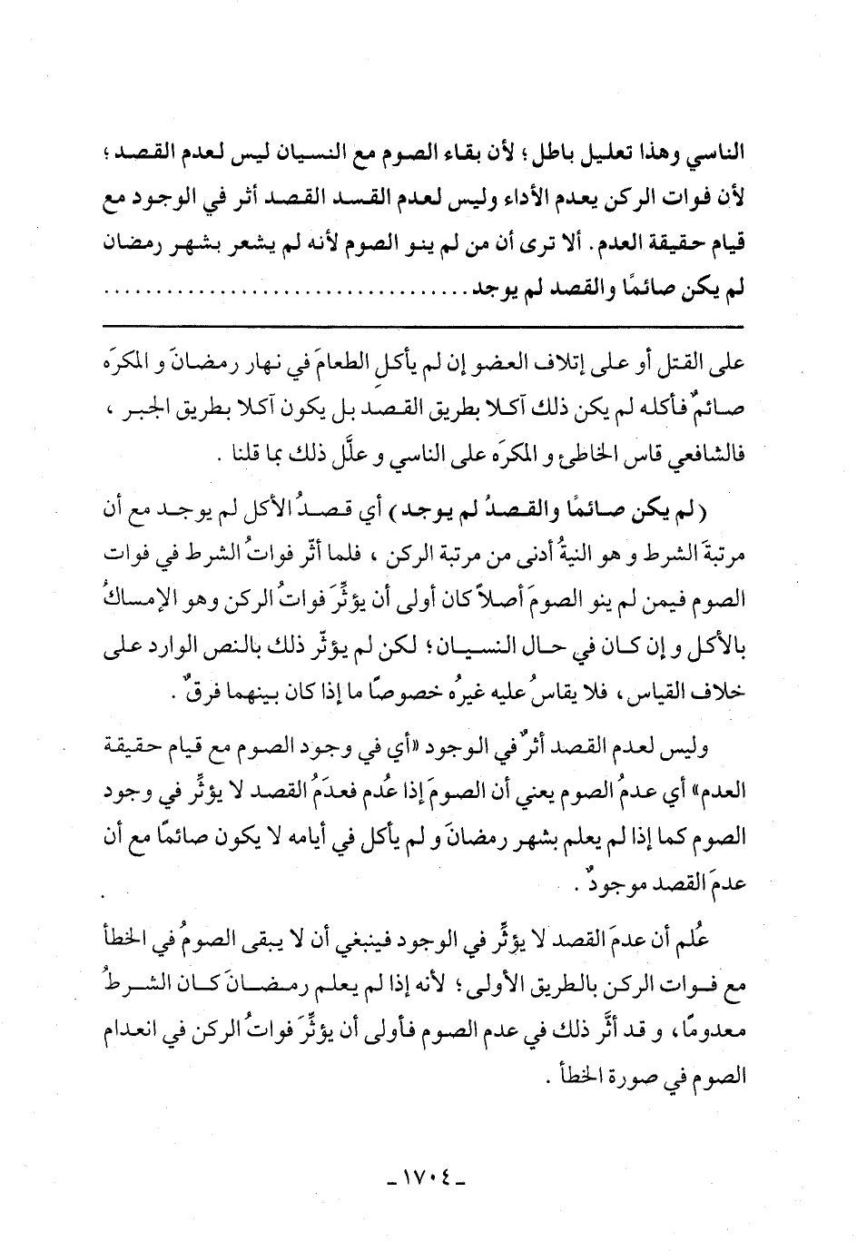 وليس لعدم القصد اثر في الوجود "أي في وجود الصوم مع قيام حقيقة العدم" أي عدم الصوم يعنى الصوم إذا عدم فعدم القصد لا يؤثر في وجود الصوم كما إ ذا لم يعلم بشهر رمضان ولم يأكل في أيامه لا يكون صائمًا مع أن عدم القصد موجود.