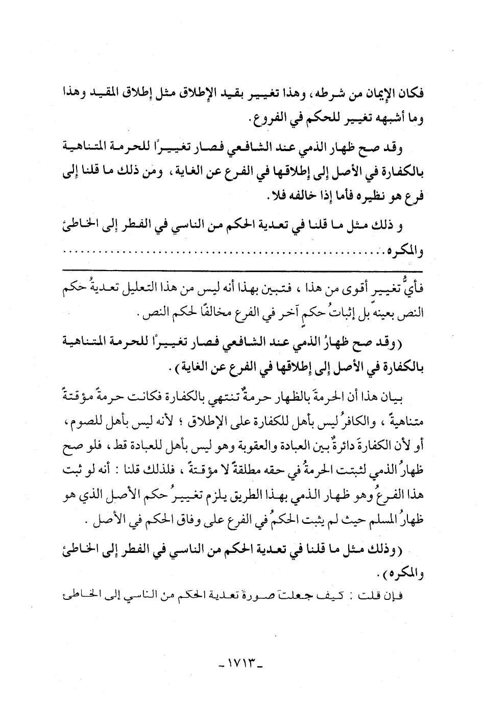 (وقد صح ظهار الذمي عند الشافعي فصار تغييرًا للحرمة المتناهية بالكفارة في الأصل إلى إطلاقها في الفرع عن الغاية).