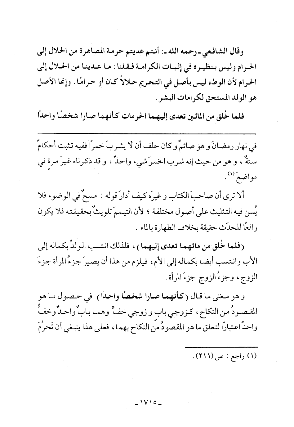 (فلما خلق من مائهما تعدى إليهما) فلذلك انتسب الولد بكماله إلى الأب وانتسب أيضًا بكماله إلى الأم، فيلزم من هذا أن يصير جزء المرأة جزء الزوج، وجزء الزوج جزء المرأة.