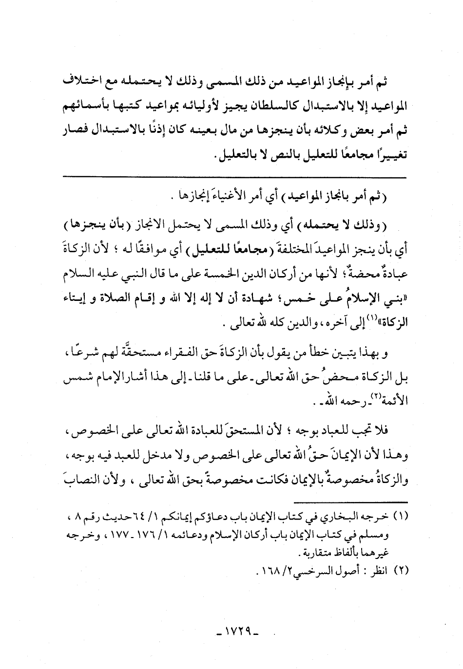 وبهذا يتبين خطأ من يقول بأنه الزكاة حق الفقراء مستحقة لهم شرعًا، بل الزكاة محض حق الله تعالى -على ما قلنا- إلى هذا أشار الإمام شمس الأئمة -رحمة الله-.