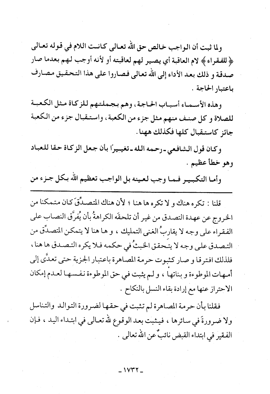 قلنا: تكره هناك ولا تكره ها هنا، لأن هناك المتصدق كان متمكنًا من الخروج من عهدة التصدق من غير أن تلحقه الكراهية بأن يفرق النصاب على الفقراء على وجه لا يقارب الغنى التمليك، وها هنا لا يتمكن المتصدق من التصدق على وجه لا يتحقق الخبث في حكمه فلا يكره التصدق ها هنا، فلذلك افترقا وصار كثبوت حرمة المصاهرة باعتبار الجزية حتى تعدى إلى أمهات الموطوءة وبناتها، ولم يثبت في حقا لموطوءة نفسها لعدم إمكان الاحتراز عنها مع إرادة بقاء النسل بالنكاح.