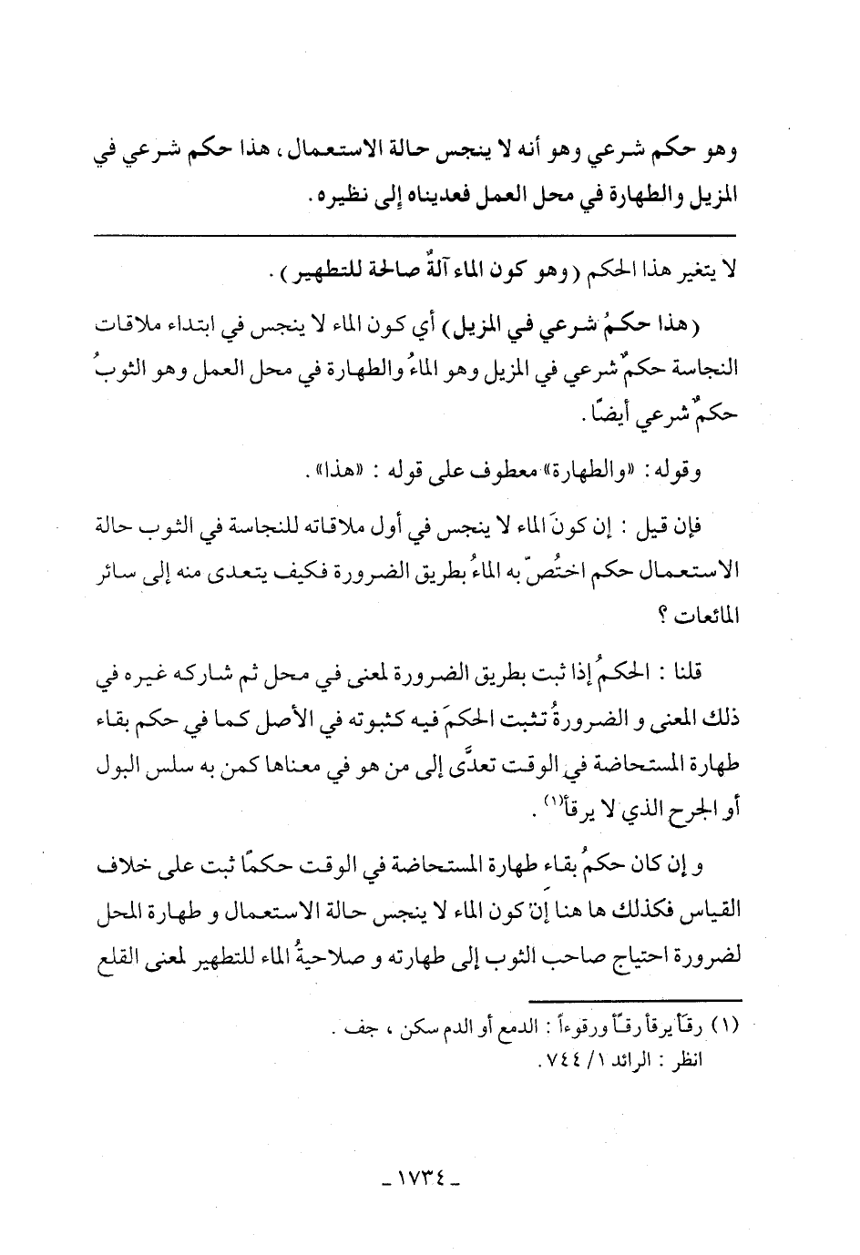 (هذا حكم شرعي في المزيل) أي كون الماء لا ينجس في ابتداء ملاقات النجاسة حكم شرعي في المزيل وهو الماء والطهارة في محل العمل وهو الثوب حكم شرعي أيضًا.