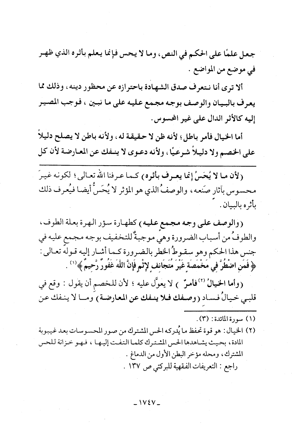 (وأما الخيال فأمر) لا يعول عليه، لأن للخصم أن يقول: وقع في قلبي خيال فساد (وصفك فلا ينفك عن المعارضة) وما لا ينفك عن