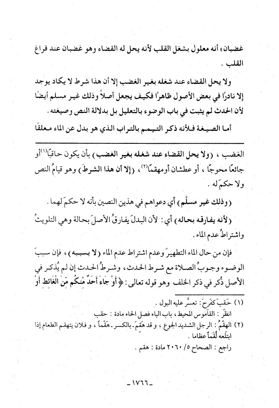 الغضب، (ولا يحل القضاء عند شغله بغير الغضب) بأن يكون حاقبًا أو جائعًا محوجًا، أو عطشان أو مهقمًا، (إلا أن هذا الشرط) وهو قيام النص ولا حكم له.