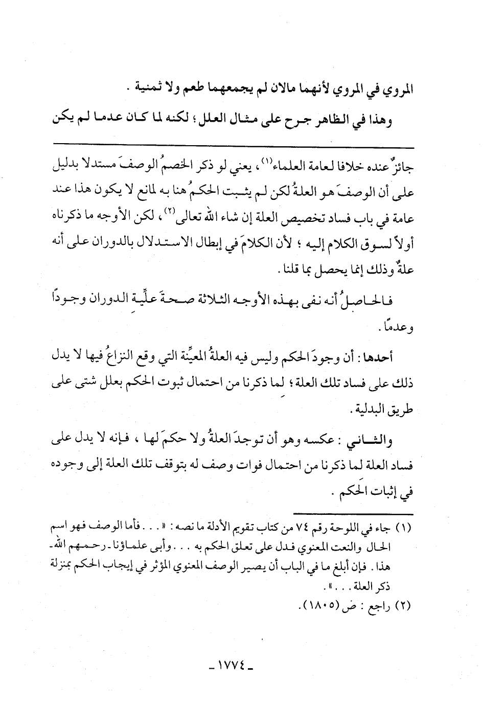 جائز عنده خلافًا لعامة العلماءِ، يعني لو ذكر الخصم الوصف مستدلًا بدليل على أن الوصف هو العلة لكن لم يثبت الحكم هنا به المانع لا يكون هذا عند عامة في باب فساد تخصيص العلة إن شاء الله تعالى، لكن الأوجه ما ذكرناه أولًا لسوق الكلام إليه، لأن الكلم في إبطال الاستدلال بالدوران على أنه علة وذلك إنما يحصل بما قلناه.
