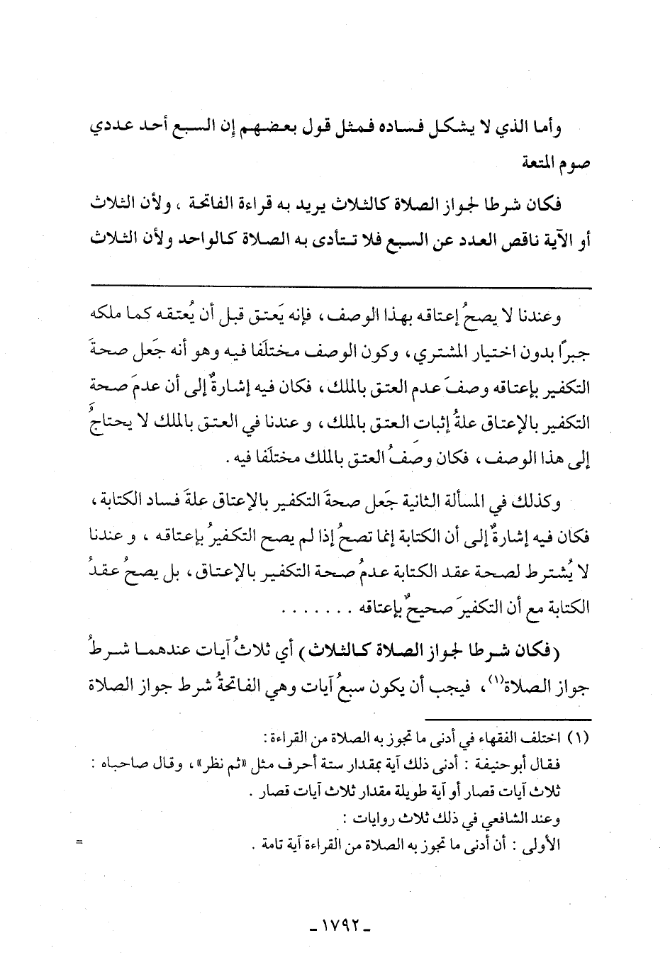 وكذلك في المسألة الثانية جعل صحة التكفير بالإعتاق علة فساد الكتابة، فكان فيه إشارة إلى أن الكتابة إنما تصح إذا لم يصح التكفير بإعتاقه، وعندنا لا يشترط لصحة عقد الكتابة عدم صحة التكفير بالإعتاق، بل يصح عقد الكتابة مع أن التكفير صحيح بإعتاقه ...