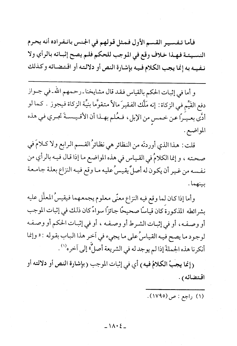 قلت: هذا الذي أوردته من النظائر هى نظائر القسم الرابع ولا كلام فى صحته، وإنما الكلام فى القياس فى هذه المواضع ما إذا قال فيه بالرأي من نفسه من غير أن يكون له أصل يقيس عليه ما وقع فيه النزاع بعلة جامعة بينهما.