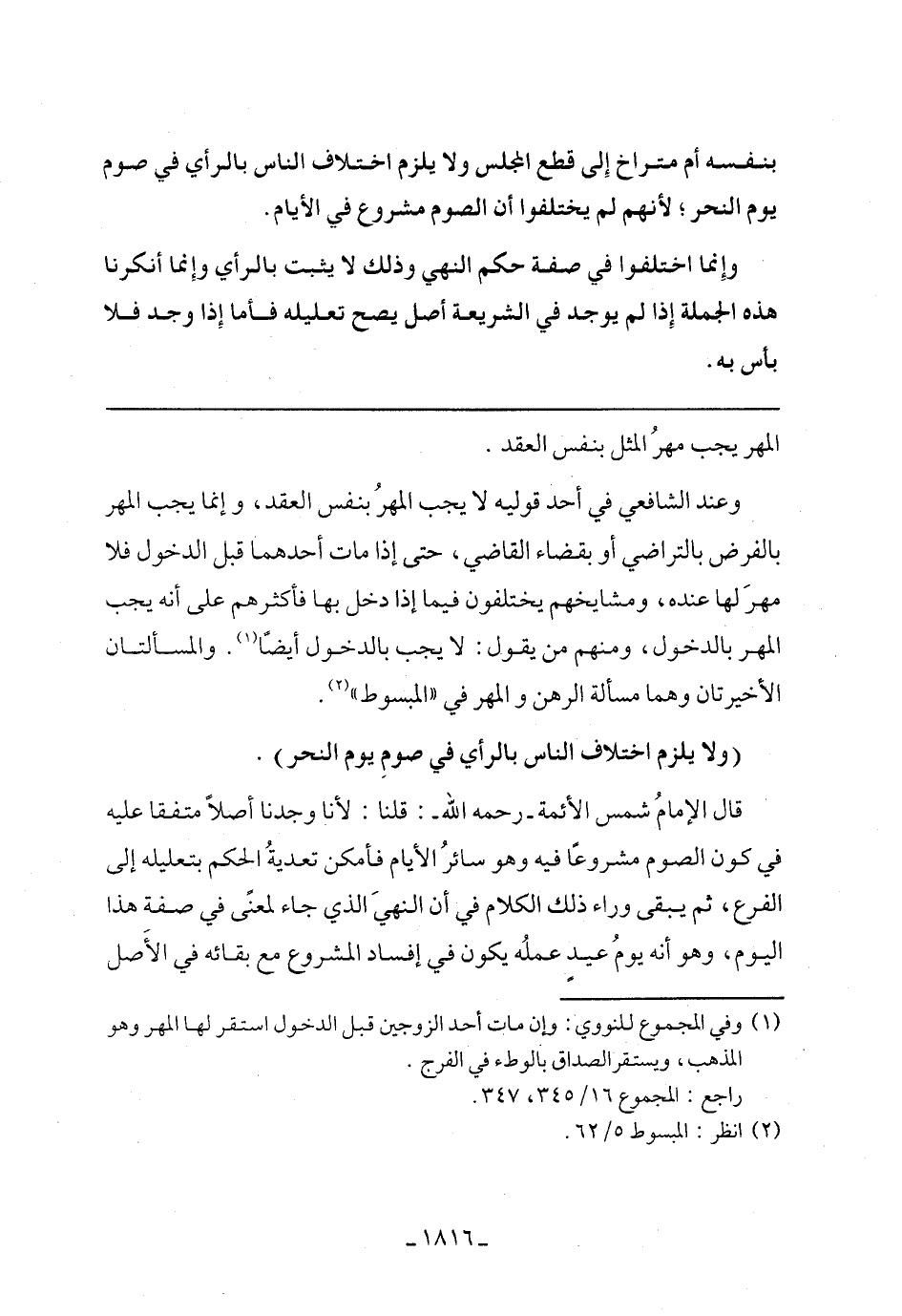 (ولا يلزم اختلاف الناس بالرأي في صوم يوم النحر).