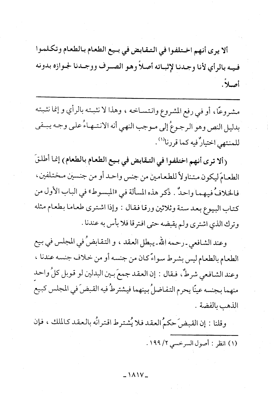 (ألا ترى أنهم اختلفوا في التقابض في بيع الطعام بالطعام) إنما أطلق الطعام ليكون متناولًا للطعامين من جنس واحد أو من جنسين مختلفين، فالخلاف فيهما واحد. ذكر هذه المسألة في "المبسوط" في الباب الأول من كتاب البيوع بعد ستة وثلاثين ورقا فقال: وإذا اشترى طعامًا بطعام مثله وترك الذي اشترى ولم يقبضه حتى افترقا فلا باس به عندنا.