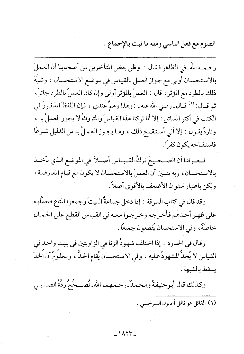 - رحمه الله- في الظاهر فقال: وظن بعض المتأخرين من أصحابنا أن العمل بالاستحسان أولى مع جواز العمل بالقياس في موضع الاستحسان، وشبه ذلك بالطرد مع المؤثر، قال: العمل بالمؤثر أولى وإن كان العمل بالطرد جائز، ثم قال: قال- رضي الله عنه-: وهذا وهم عندي، فإن اللفظ المذكور في الكتب في أكثر المسائل: إلا أنا ركنا هذا القياس والمتروك لا يجوز العمل به، وتارة يقول: إلا أني أستقبح ذلك، وما يجوز العمل به من الدليل شرعًا فاستقباحه يكون كفرًا.