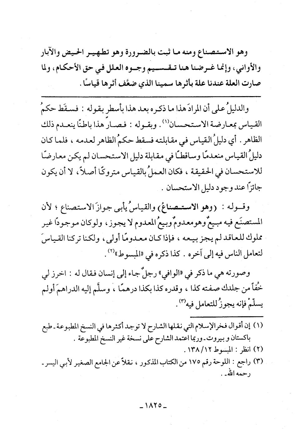 وقوله: (وهو الاستصناع) والقياس يأبى جواز الاستصناع، لأن المستصنع فيه مبيع وهو معدوم وبيع المعدوم لا يجوز، ولو كان موجودًا غير مملوك للعاقد لم يجز بيعه، فإذا كان معدومًا أولى، ولكنا تركنا القياس لتعمل الناس فيه إلى آخر. كذا ذكره في "المبسوط".