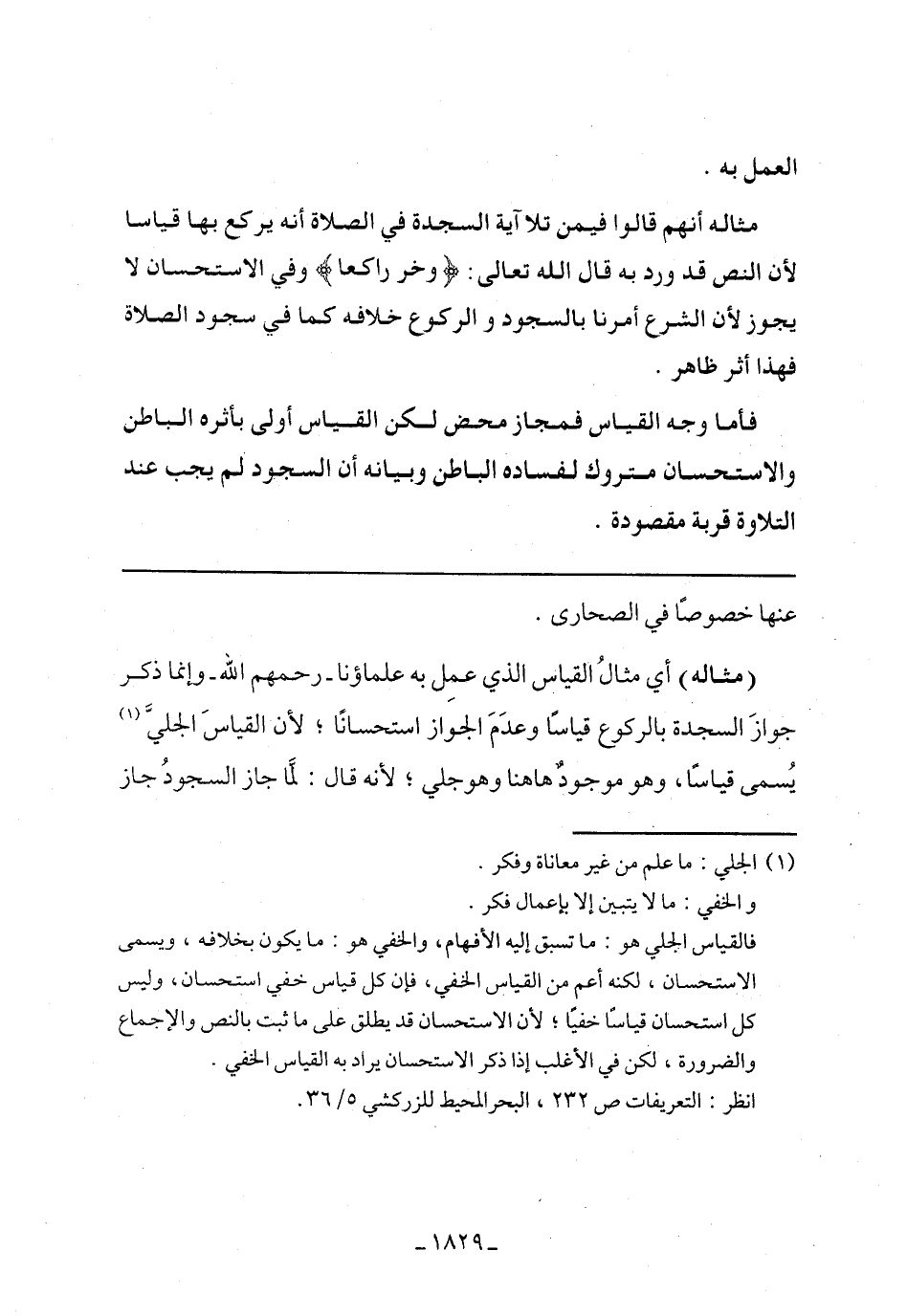 (مثاله) أي مثال القياس الذي عمل به علماؤنا- رحمهم الله- وإنما ذكر جواز السجدة بالركوع قياسًا وعدم الجواز استحسانًا، لأن القياس الجلي يسمي قياسًا، وهو موجودًا هاهنا وهو جلي، لأنه قال: لما جاز السجود جاز