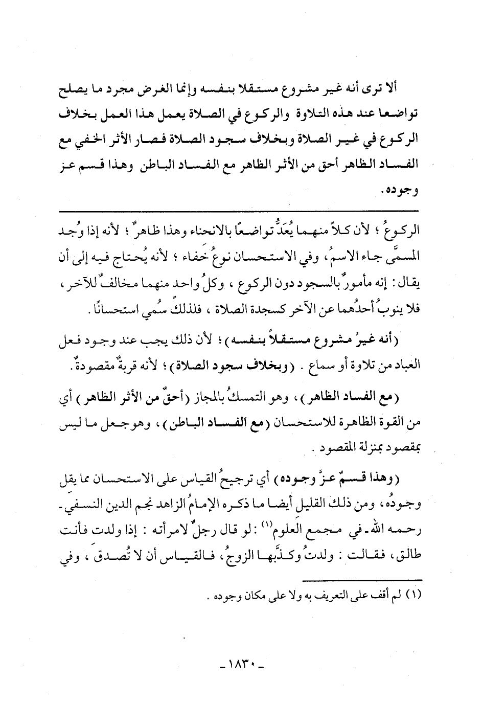الركوع، لأن كلًا منهما يعد تواضعًا بالانحناء وهذا ظاهر، لأنه إذا وجد المسمى جاء الاسم، وفي الاستحسان نوع خفاء، لأنه يحتاج فيه إلى أن يقال: إنه مأمور بالسجود دون الركوع، وكلل واحد منهما مخالف للآخر، فلا ينوب أحدهما عن الآخر كسجدة الصلاة، فلذلك سمي استحسانا.