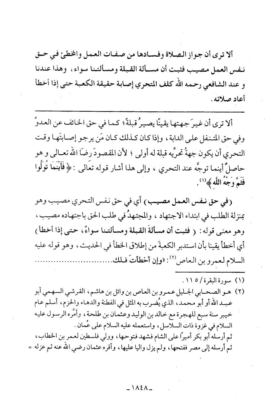 (في حق نفس العمل مصيب) أي في حق نفس التحري مصيب وهو بمنزلة الطلب في ابتداء الاجتهاد، والمجتهد في طلب الحق باجتهاده مصيب، وهو معنى قوله: (فثبت أن مسألة القبلة ومسألتنا سواء، حتى إذا أخطأ) أي أخطأ يقينا بأن استدبر الكعبة من إطلاق الخطأ في الحديث، وهو قوله عليه السلام لعمرو بن العاص: "وإن أخطأت فلك .........................