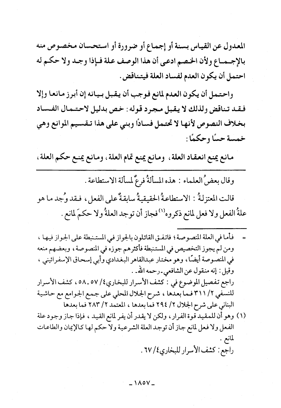 قالت المعتزلة: الاستطاعة الحقيقية سابقة على الفعل، فقد وجد ما هو علة الفعل ولا فعل لمانع ذكروه فجاز أن توجد العلة ولا حكم لمانع.